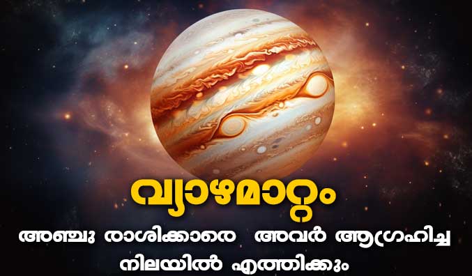 2026 ജൂൺ 2നു സംഭവിക്കുന്ന വ്യാഴമാറ്റം അഞ്ചു രാശിക്കാരെ അവർ ആഗ്രഹിച്ച നിലയിൽ എത്തിക്കും. തൊഴിലിൽ ഉന്നത നിലയിൽ എത്തിക്കും